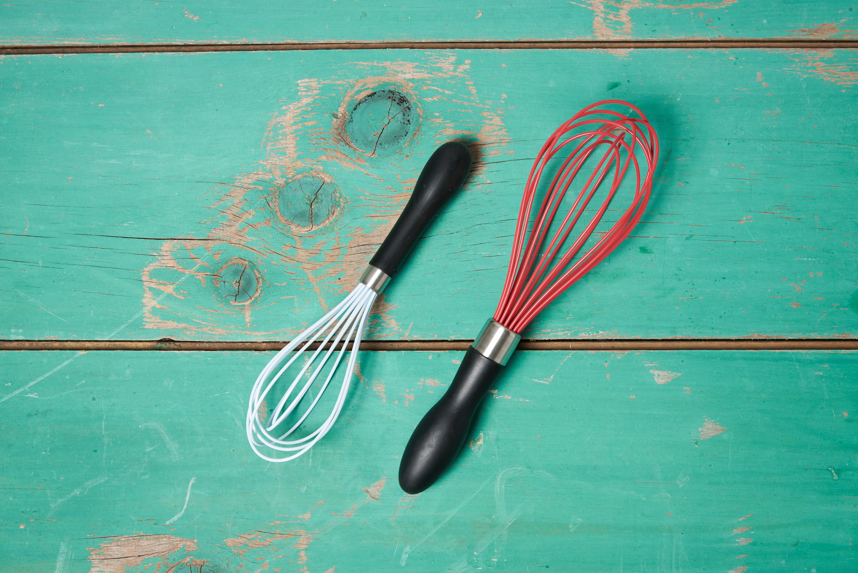They feature OXO’s comfortable, non-slip handle and can tackle all manner of dishes. Use the small one to scramble eggs, mix a roux, or make a vinaigrette. Use the big one for mixing batters, whipping cream and more!