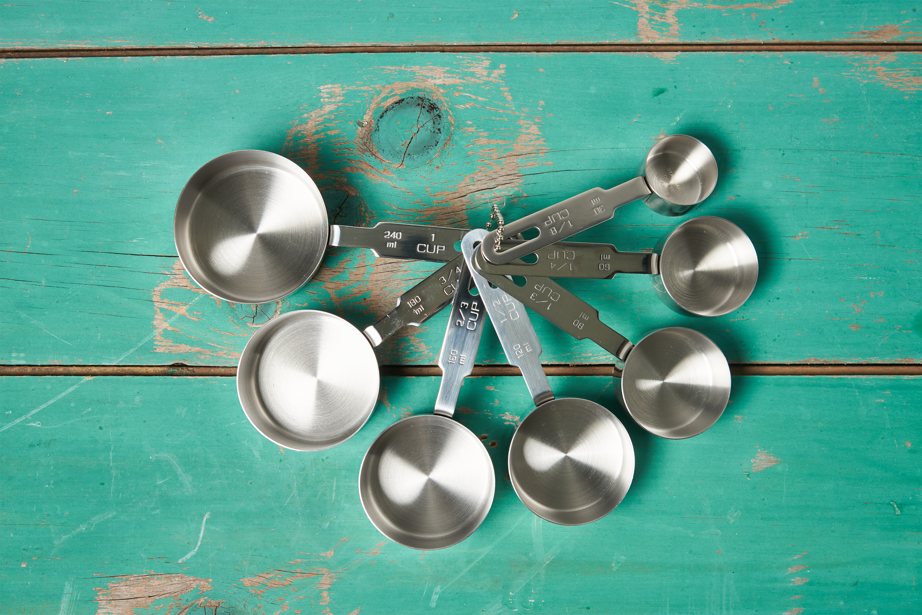 This heavy gauge, 18/8 stainless steel measuring cup set is a sturdy, reliable tool we always keep handy.