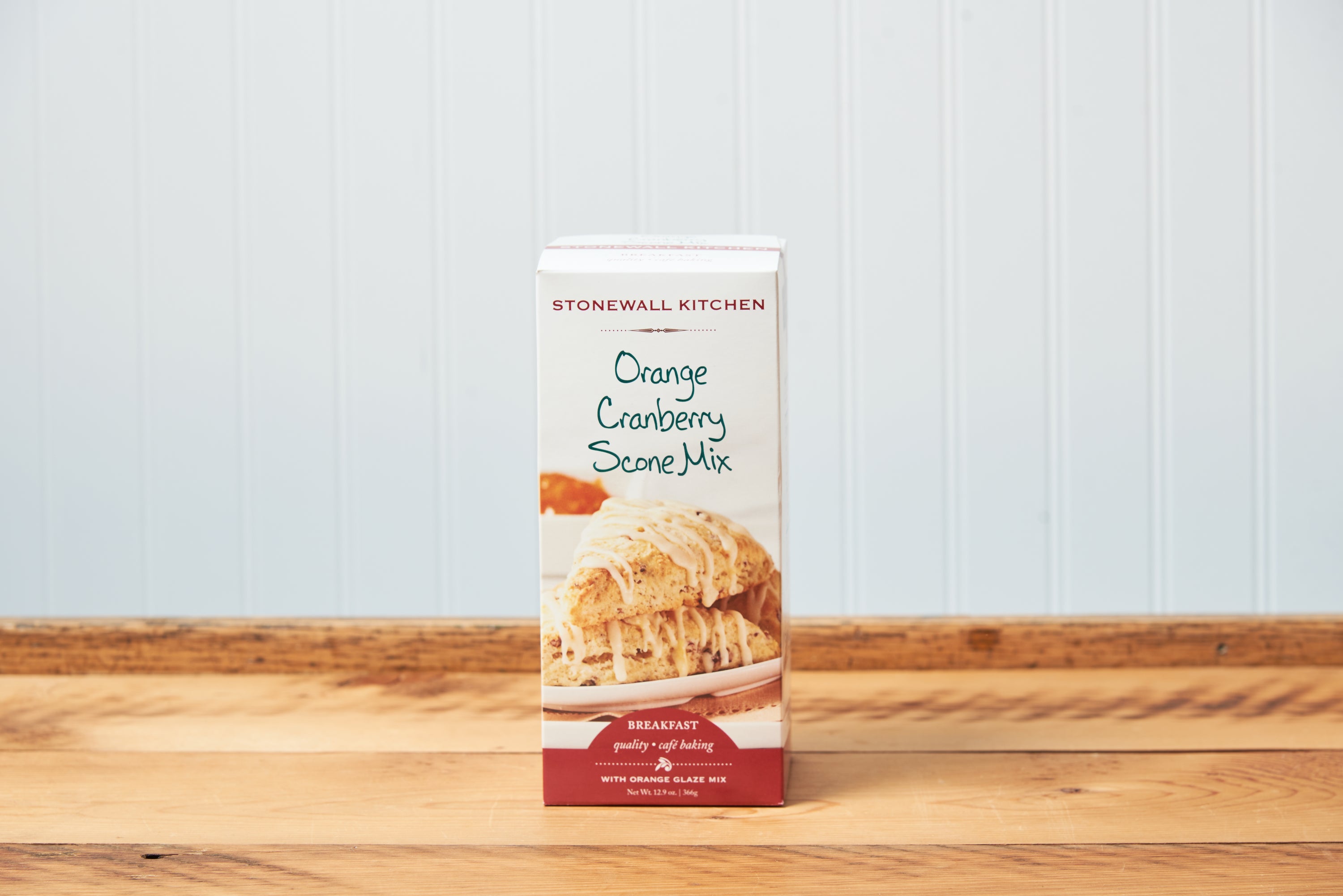 Ingredients: Enriched Wheat Flour (wheat flour, malted barley flour, niacin, iron, thiamin mononitrate, riboflavin, folic acid), Wheat Flour, Confectioners Sugar (sugar, cornstarch), Dried Cranberries (cranberries, sugar, sunflower oil), Sugar, Buttermilk Powder, Orange (orange peel and pulp), Natural Orange Flavor, Baking Soda, Sea Salt, Baking Powder (sodium acid pyrophosphate, baking soda, cornstarch, monocalcium phosphate)
